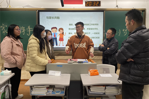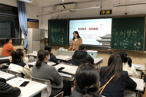 教学楼里各个班级灯火通明,老师和家长共聚一堂。干净而温馨的教室,精美而丰富的PPT,充实而详尽的会议内容,都诠释着老师们饱满的热情和真挚的诚意。