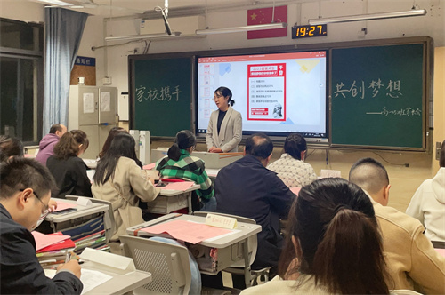 张早慧副校长从师资配备、教学管理、学生品格提升等方面入手,介绍了高一年级近阶段完成的相关工作,并向各位家长提出5点恳切建议: