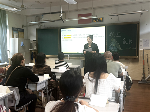 副校长张早慧在高二年级家长学校上,向家长汇报了学校2024年的办学成绩,并强调和谐融洽的亲子关系有助于高二学生的健康成长。