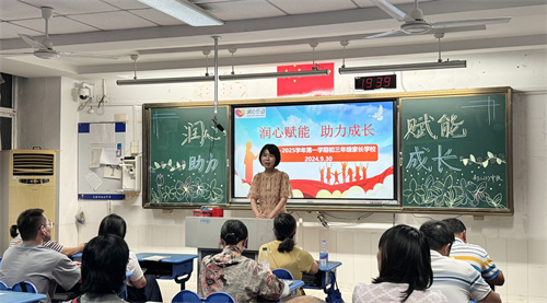 国庆节前夕,湖滨中学初中部积极响应教育部门的号召,为初一年级至初三的学生及其家庭策划了一场以“润心”为主题的家长学校系列活动。学校通过与家长进行深入对话和情感交流,在家校之间架起一座沟通的桥梁,共同关注孩子们的心理健康与全面发展,让每一位学生的内心都能沐浴在关怀与力量的阳光下。