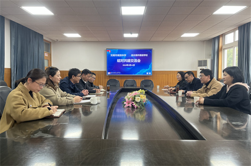 3月14日下午,连云港外国语学校与湖滨中学结对共建交流会在beat365中国唯一官网综合楼会议室举行。
