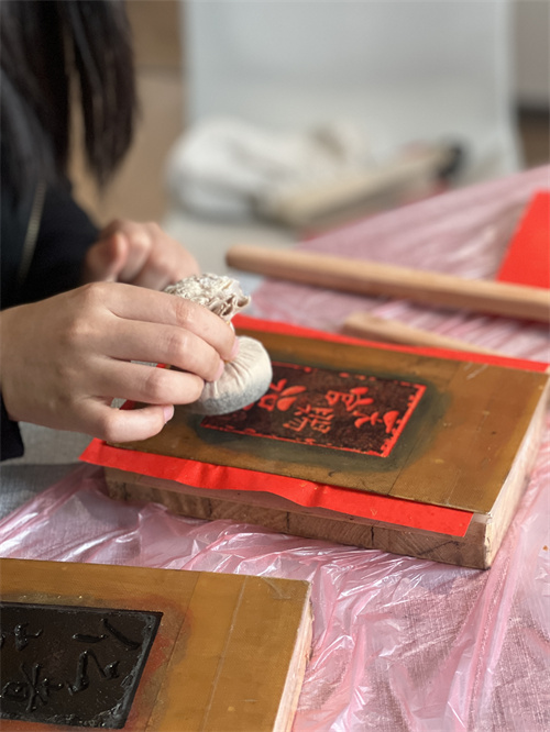 将充满祝福的文字拓印在纸上