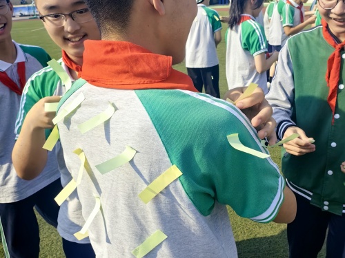 活动一开始,“压力大爆炸” 环节瞬间点燃全场气氛!同学们领取到代表不同压力的彩色贴纸,红色的学业压力、蓝色的人际压力、黄色的自我期待,统统被贴在身上。