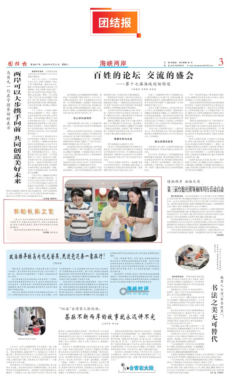 (团结报:由中国国民党革命委员会中央委员会主管、主办,是民革中央机关报、统一战线主流媒体,是中国八个民主党派唯一的中央级党报)