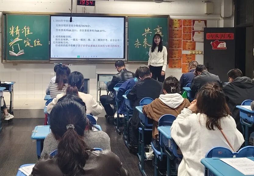 随后各班分头交流,任课老师结合学科精准分析,班主任以“精准定位,全力以赴”为主题,强调目标设定的重要性与家校协作的力量。