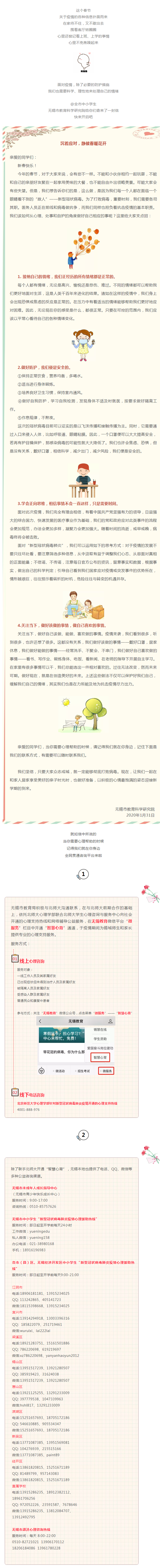无锡教育全面搭建疫情心理防护平台,这些联系方式请记住!