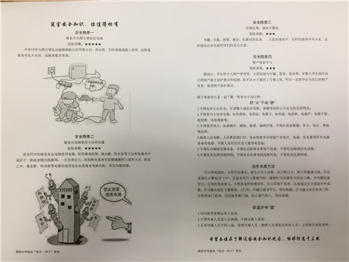 一拿到学习资料,同学们就饶有兴趣地学起来了。大家对宿舍可能存在的安全隐患、如何“防患于未然”、遇到突发安全问题如何处理等有了初步的了解。