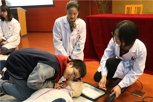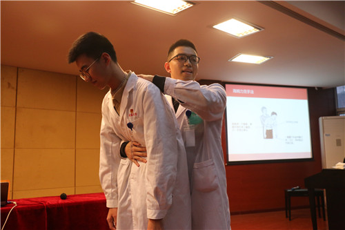 本次讲座主要讲解心肺复苏和海姆立克法,志愿者们通过现场的实践演练,加上学生的亲身体验,使得学生的安全意识与自救、互救水平都得到了一定程度的提高。