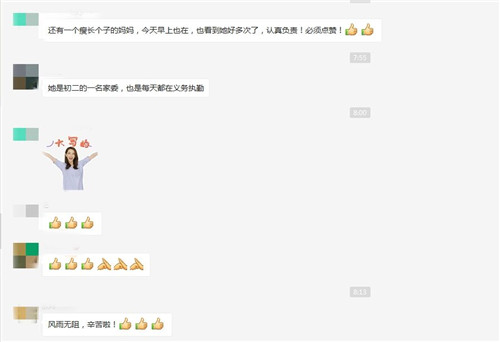 “不管刮风下雨,都有家长帮着指挥交通,这种坚持让人感动。”“校门口不堵了,真是应该向执勤的老师和家长们说一声谢谢!”“家长是孩子最好的榜样,为这些爸爸妈妈点赞!”最近,beat365中国唯一官网家委会“护学岗”的事迹在朋友圈、家长群连连刷屏。
