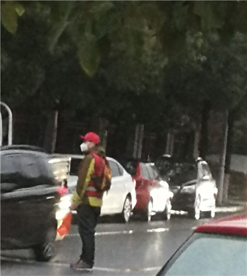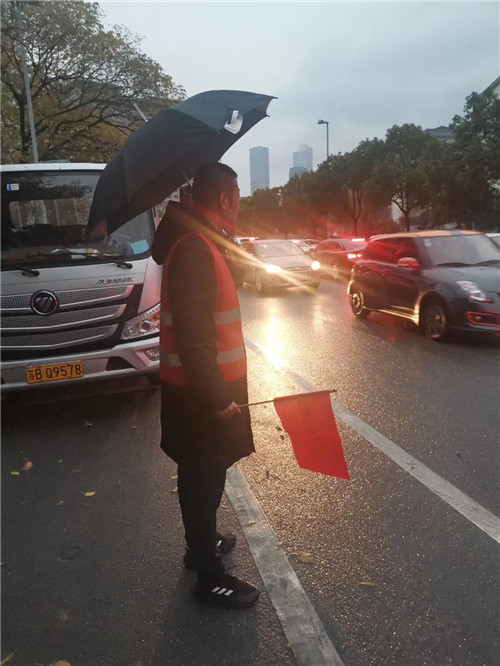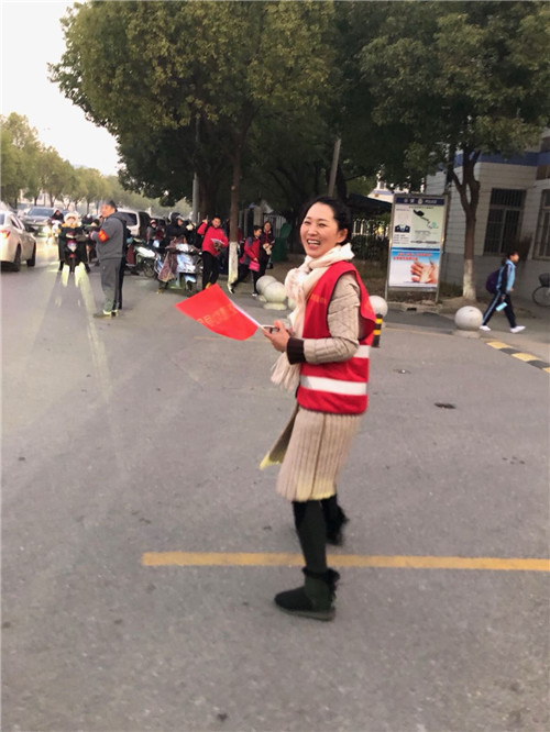 天还刚蒙蒙亮,每日负责义务执勤的家委会成员们就已到岗,鲜红的马甲在车流中显得格外耀眼。每天上下学时间是校门口最易拥堵的时间段,志愿者们必须不停穿梭于车辆之间,提醒接送孩子的家长即停即走。由于是两所学校共处一个校园,校门口的安全管理强度和难度都成倍增加,有时遇到个别有不同想法的家长,志愿者们还需耐心沟通,用微笑和善意化解分歧,如有委屈也只能默默承受。碰上恶劣天气,车辆通行缓慢,交通情况更加复杂,志愿者们不仅要维持秩序,还帮着撑伞护送孩子。