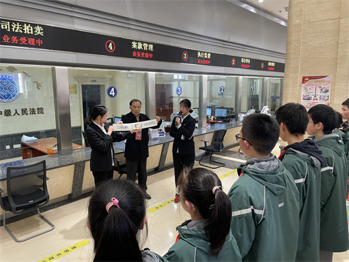 在法院工作人员的引导下,同学们了解了法院的工作职能、立案程序和法庭设置等情况,观看、体验了法庭智能化的设施设备,并体验敲响法槌,扮演了一次“小法官”,切实感受司法的公正和法律的威严。