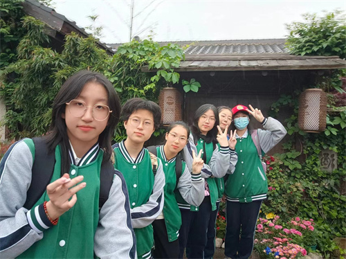 一路上,窗外是芳菲倾城,窗内是憧憬无限。我们或欣赏沿途风景,或大声歌唱抒情。走下大巴,扑面而来的是人间晚春,趁春光与笑靥齐齐如花,“咔嚓”“咔嚓”的合影声四起。伴随着一声“解散!”一个个班级瞬间蹿成了无数个小分队,随着雨丝游走在旷阔的山野与潋滟的春色之间。