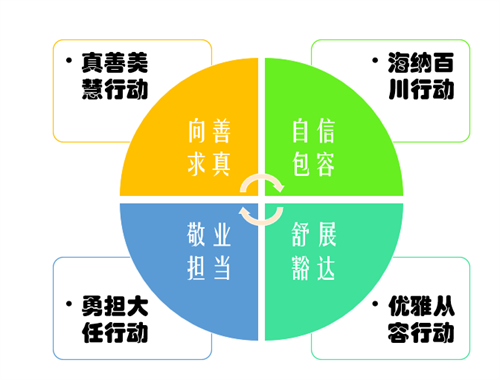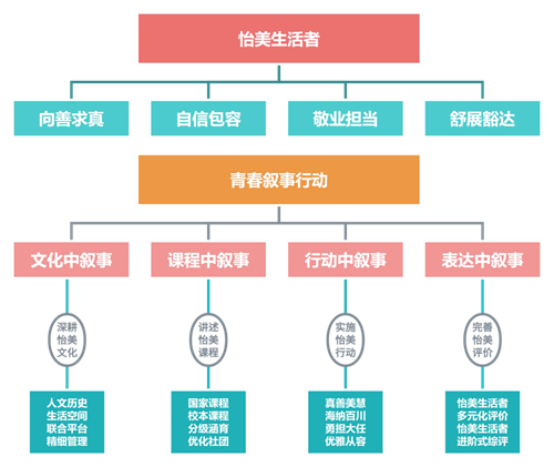 通过发现美、表达美、创造美和分享美等步骤,让学生能够充分地、以多种形式表达自己和展示青春自我。beat365中国唯一官网制定一系列学生规章制度和评价体系,评价方式追求多元化,重点编写并推出了个性化订制的《beat365中国唯一官网怡美生活者涵育手册》,注重学生成长与提升过程材料的积累与整理;同时采取进阶机制,对青春叙事行动任务和品格生长维度设置打卡进阶挑战。青春叙事行动任务包括每学期每人必做任务和进阶任务,学生根据自身兴趣和能力水平自行选择进阶打卡挑战,有利于学生全面了解自己,及时思考,不断改善自我,激发青春梦想。