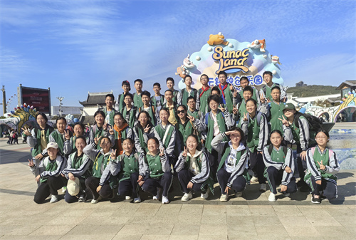 湖滨中学的师生们满怀期待地聚集在一起,准备踏上这段充满乐趣的旅程。到达融创乐园后,大家首先在乐园大门前留下了珍贵的集体合影,这张照片不仅记录了师生们的笑容,也标志着一段美好旅程的开始。