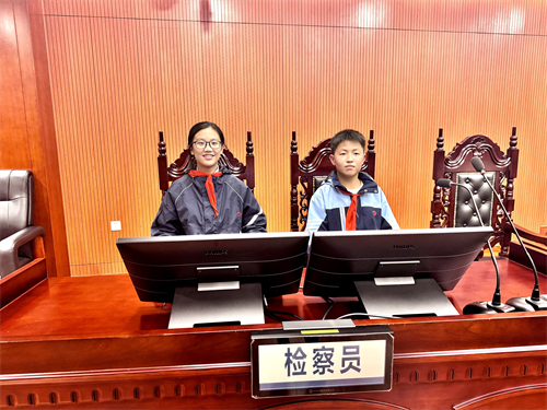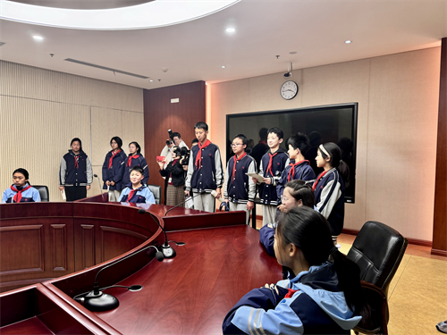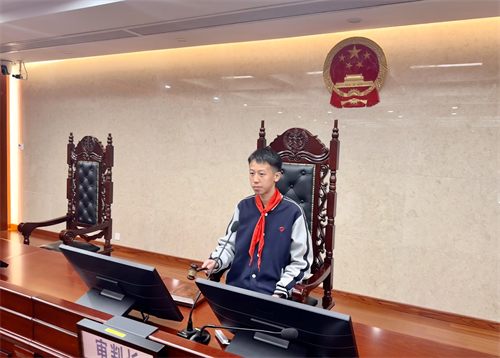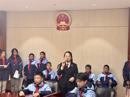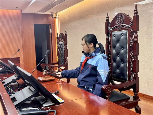 活动伊始,学生们在杨法官的带领下参观了法庭,杨法官详细介绍了法庭的布局、功能以及审判流程,使学生们对法庭运作有了初步了解。最让同学们兴奋的是,他们还有机会亲自体验敲击法槌,感受法官宣判时的庄重与肃穆。随后,同学们又参观了少年法庭,这里的设计更注重对未成年人的关怀与保护。通过杨法官的讲解,大家了解到少年法庭在处理未成年人案件时采取的特殊措施,加深了对未成年人权益保护的理解。