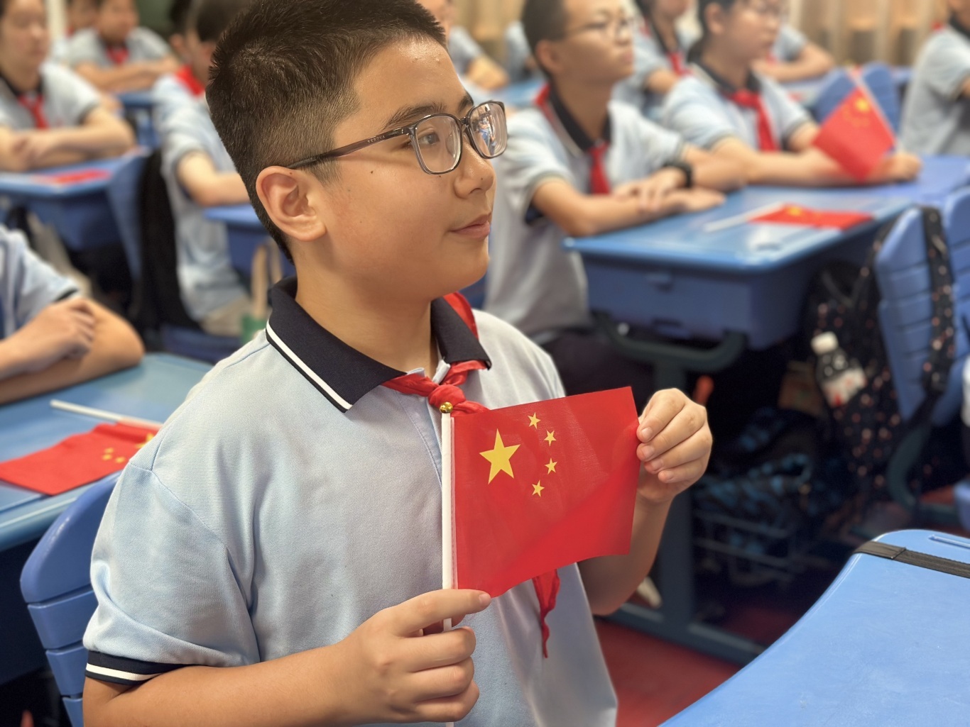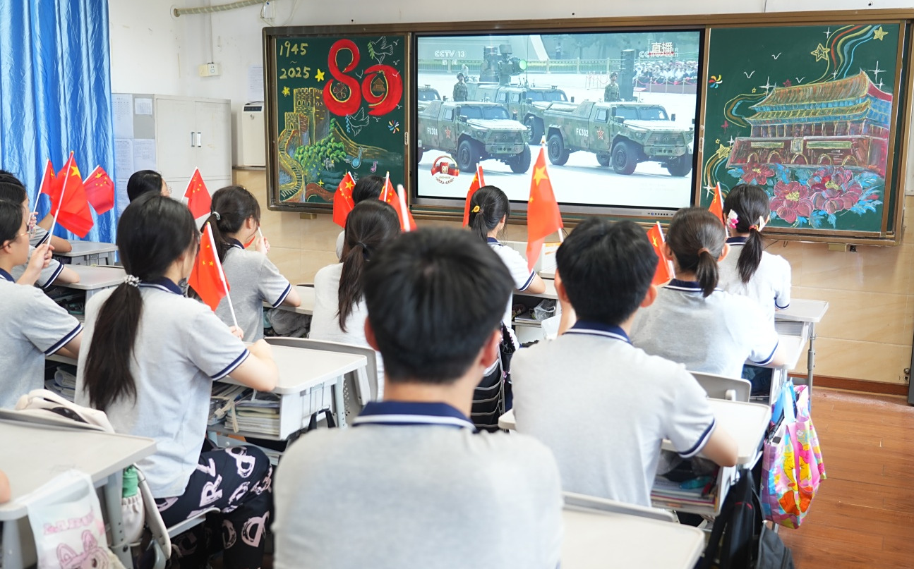 军人们身姿挺拔,伴着鲜红的旗帜,踏着整齐划一的节奏缓缓走来。仅是屏幕上的短暂一瞬,便让我心潮澎湃。吾辈青年应铭记历史,勿忘国耻,以过硬的身体素质和丰富的知识储备,不断创新,不断发展,让五星红旗永远在祖国的上空高高飘扬,让中华民族永远屹立于世界民族之林。熠熠金辉,映照红旗漫卷;浩浩华光,永远见证我国的繁荣昌盛。