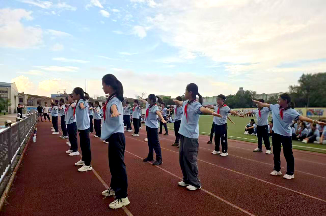 回顾备赛历程,感动历历在目。从开学第一天起,同学们就在烈日高温下,开始了广播操的学习。对于刚从小学升入初中的初一新生而言,这是融入新集体的第一课。一个个动作的分解练习,一次次节奏的反复磨合,汗水模糊了视线,但眼神却愈发坚定。