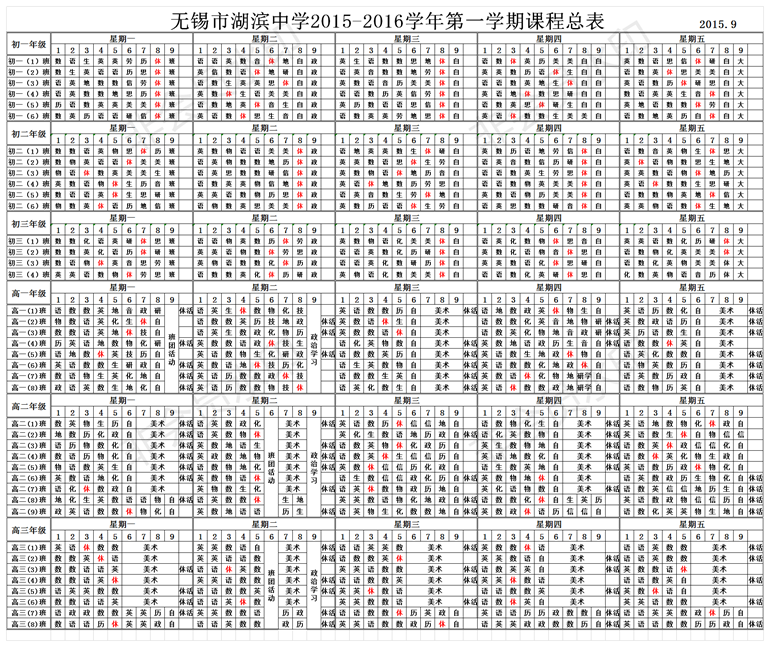 2015-2016学年第一学期总课表