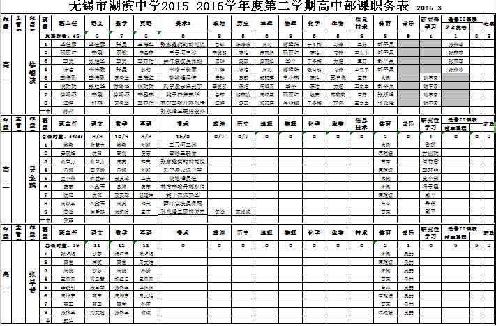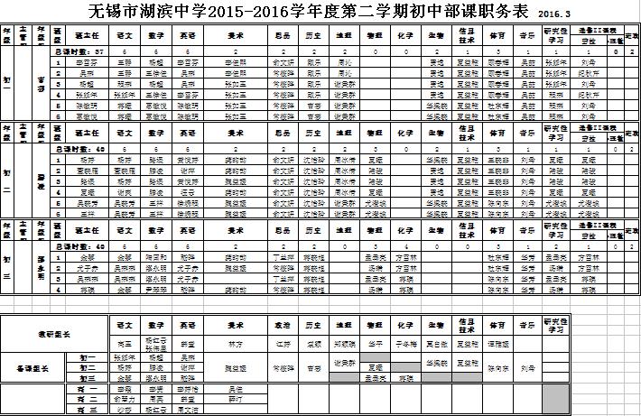 2015-2016学年度第二学期课职务表
