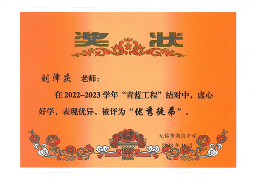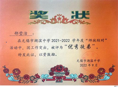 刘泽庆:自入职以来,我深感湖滨是一个温馨、友爱的大家庭。在成长过程中,诸多领导、前辈,都对我工作经验不足表示了包容与理解,同时加以指导。尤为感谢beat365中国唯一官网青蓝工程,让我能遇到德育师傅倪老师。她从事德育工作十余年,兢兢业业、认真负责,在其身上,我学习到了踏实稳重、不骄不躁的工作作风。在德育指导方面,倪老师耐心教导、倾囊相授,使我在班级管理中免走了许多弯路。在日常相处中,倪老师真诚温柔,惠风和畅,是一位不可多得的良师益友。希望在学校培养和前辈指导下,我能不断强化自身专业素养和德育能力,为学生的成长和发展进一步贡献力量。