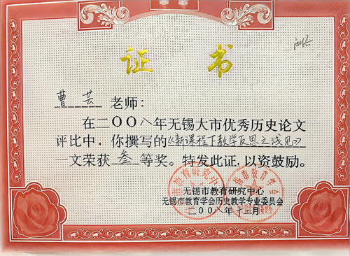 曹芸,苏州大学历史教育硕士,初中部历史学科组长。教学经验丰富,教学风格幽默风趣,深受学生喜爱。曾多次代表学校开设对外公开课,受到一致好评。参与学校校本教材《走近历史》的编撰工作,并在学校“课程超市”的课程中进行校本教材的教学工作及公开课的展示。除常规教学外,还积极带领组内教师组织了“会说话的文物”、“理想照耀中国”连环画设计、历史知识竞赛、历史学科延展社团等形式多样的第二课堂活动。学生在亲身体验中感受历史的魅力,这些锻炼了学生的表达能力和团队合作精神,涵养了学生的爱国之情和责任担当,历史学科的育人目标落到了实处。