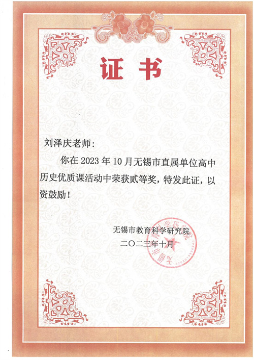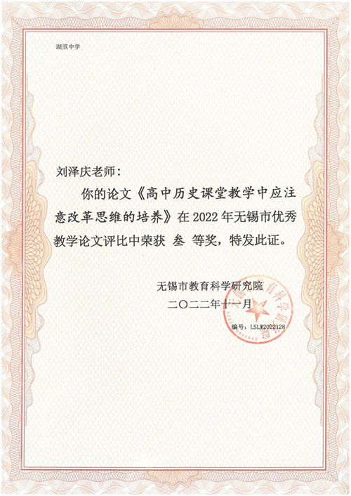 刘泽庆老师,江苏师范大学硕士研究生。本科、研究生在读期间多次获得朱敬文奖学金、一等学业奖学金、优秀学生干部等荣誉,并荣获安徽省品学兼优毕业生(本科)、校优秀毕业生(本科、硕士)荣誉。自入职以来,在教学方面,刘老师认真负责,兢兢业业,课堂广受好评。在德育方面,刘老师坚持三全育人理念,以爱心、耐心和责任心关注学生健康成长,所带班级在多方面表现亮眼,展现出较强的班级凝聚力,荣获无锡市属院校五四红旗团支部荣誉称号。在科研方面,刘老师主持的无锡市教育学会教育科研课题已开题并逐步推进。