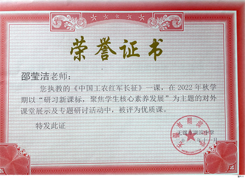 邵莹洁,毕业于扬州大学历史师范专业。担任历史教学和班主任工作,同时连续两年担任“学民俗,玩转中国历史”社团指导老师,深受学生喜爱。任教期间,曾开设《中国工农红军长征》《辛亥革命》等公开课,皆被评为优质课堂。自青蓝工程“师徒结对”后,两度获“优秀徒弟”称号,曾在青年教师专业发展技能比赛中获校一等奖,在青年教师寒假读书心得评比中获校二等奖。