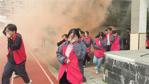 11月18日上午9点整,警报声响彻校园,同学们捂住口鼻,弯腰靠墙,按照指定路线有序撤离到操场安全地带。整个演练过程快、静、齐,大家紧密合作,服从指挥,迅速完成了此次演练任务。