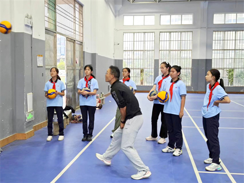 双手交叠摆开架势,灵巧接连每一次高高抛起的排球