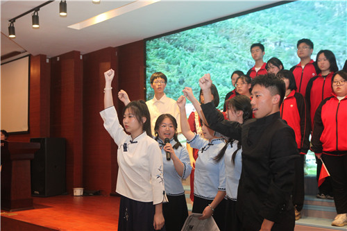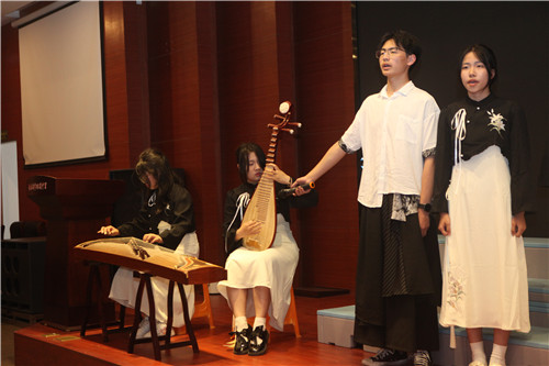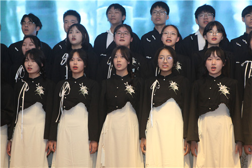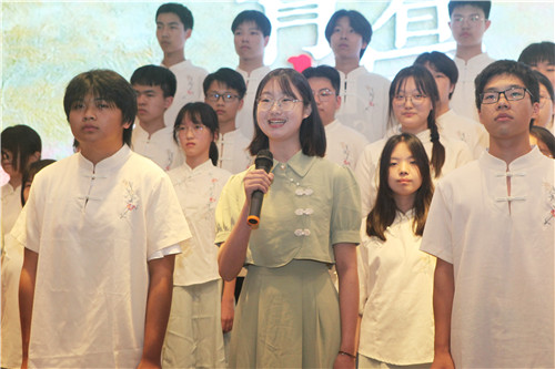 高一(3)、(7)和(8)班的同学们心系祖国,选择了《青春中国》、《诗意中国》和《盛世中国》为主题,充分表达了湖滨学子对伟大祖国的无限爱慕之情;高一(2)班的《黄河颂》,仿佛把观众带到了母亲河旁边,感受到了祖国山河的波澜壮阔;《离骚》是伟大爱国诗人屈原的代表作,高一(4)班同学们结合着古筝、琵琶来吟诵,颇有古人之风范;高一(1)班的《书写青春华章》和高一(6)班的《青春》,以五四运动为时代背景,将青年人的爱国、激情、正气、活力展现得淋漓尽致。同学们才华横溢,在朗诵的基础上加入了吟唱、民族舞和书法等元素,赢得了评委和观众们的阵阵掌声。