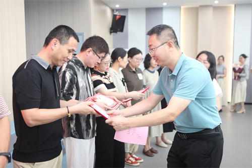 活动伊始,周凌峰副校长宣读了2023-2024学年青蓝工程优秀师徒名单;钱荣副校长和赵龙副校长分别宣读了2024-2025学年青蓝工程教学和德育师徒名单,并分别向教学和德育指导老师颁发聘书,将一份光荣的责任交付于这30位师父,徒弟们则多了一位亦师亦友亦知己的领路人。