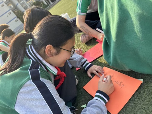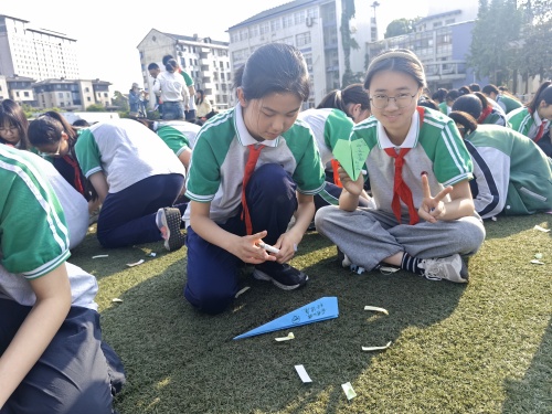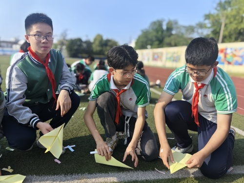 活动的最后,“梦想起飞” 为这场减压之旅画上了温暖又充满希望的句号。同学们在 A4 纸上写下、画下自己的目标,折成飞机放飞。飞机上还藏着超酷的抗压彩蛋 —— 自我激励暗语,机翼上的荧光笔祝福语闪闪发光。