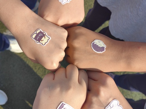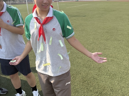 活动一开始,“压力大爆炸” 环节瞬间点燃全场气氛!同学们领取到代表不同压力的彩色贴纸,红色的学业压力、蓝色的人际压力、黄色的自我期待,统统被贴在身上。