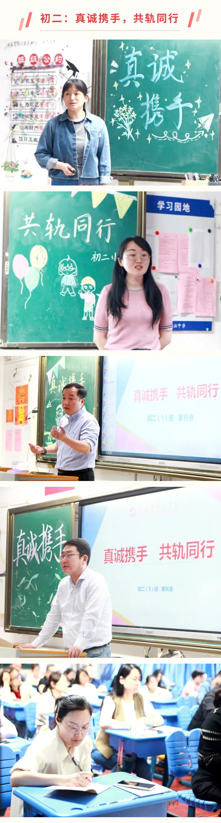 初二年级以“真诚携手,共轨同行”为主题,集中讨论了“家校同频”的理念。紧扣青春期的沟通技巧、习惯培养等话题,双方进行了深入交流,并共同制定了假期学习支持计划。任课教师基于期中考试结果,从知识点掌握程度、学科优势等方面详细分析了学情,并提供了针对性的学习策略建议。班主任通过设立“进步之星”、“学习之星”、“劳动标兵”等奖项,肯定了学生的阶段性成就,同时提醒家长们注意假期安全,合理安排学习与休息时间。