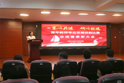 橙黄橘绿,流金遍野,所有的美好翩然而至。湖滨的深秋,正是芳华璀璨。11月3日下午,初中部首届青年教师专业发展技能比赛(以下简称“青技”比赛)总结暨表彰大会在四楼报告厅隆重举行。初中部全体学科、备课组长与青年教师齐聚一堂,对历时一个半月的大赛进行总结回顾。湖滨中学党委书记夏敏、副校长周凌峰为获奖教师颁奖,初中部主任张伟星对大赛作总结发言,陶晶晶、李杨、董晓雁三位老师作为青年教师代表分享了他们的经验和感受。青年教师在竞技中展现扎实全面的基本功,在交流中尽显谦虚求进的态度,以优秀的表现赢得了大家的认可与赞誉,让这个收获的季节更美好。(附获奖名单)