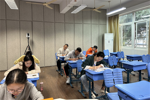 国庆节后的第一个工作日午后,教学楼内各个办公室均现大量空位。被各班课代表翘首以盼的青年教师们集体出现在考试教室奋笔疾书。“青技”比赛首轮教学设计比赛正在如火如荼地进行。比赛课题由各学科组提供比赛备选内容,最终由领导小组抽签确定。比赛现场,“裸考”的青年教师们仅携带一支笔从容上阵,沉着思考,将他们对教材、教法的思考融入笔端,呈现了一个个富于实践性与创新性的教学设计,展现出流畅的教学思维和颇为扎实的教学功力。经领导小组的各学科组长综合考评,13位教师脱颖而出,跻身下一轮比赛。