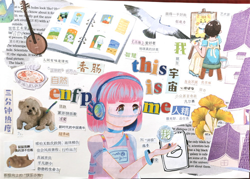“认识自我”是中学生成长阶段的必修课之一,全面客观的自我认识对中学生的健康成长发挥着至关重要的作用。一个人唯有认清自己、接纳自己,发展出健康的自我概念,他才有能力去认识别人、肯定别人,与他人建立良好的人际关系。拼贴画心理疗法是日本心理学家森谷宽之先生在1987年尝试扩展箱庭疗法的适用范围时无意中创造出来的一种心理治疗的方法,它可以将隐藏在心中的意象可视化,将不好的情绪发泄出来,将美好的感情寄托在其中。