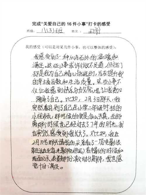 探寻自己是不会停歇的旅途,关爱自己是终身浪漫的开始 ——寒假心理实践作业展