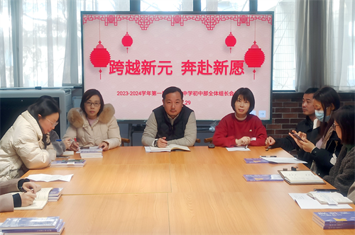 在岁末的最后一个学习工作日,初中部全体学科组长、备课组长在书吧聚首,参加迎新座谈会,总结梳理话过往,驰望未来谋突破。会议由许肖洁老师主持,初中部张伟星主任出席会议。各位组长进行交流发言,他们驻足回望本学期教学中的亮点,反思工作中的不足,同时又立足当下,展望未来,思考下学期工作的新突破口。张伟星主任作总结发言,他充分肯定各学科组、备课组的年度工作和成绩,同时希望组长们继续发挥示范引领作用,积极思变,带领组内教师推动学校教学工作再上新台阶!在各学科组的智慧引领和全体教师的无私并肩下,初中部在2023年取得了丰硕的成果,赢得社会广泛美誉。面向2024年,全体教师将心怀谦逊与信心,总结成绩,砥砺奋进,开启教学新篇章,破浪前行又一年。