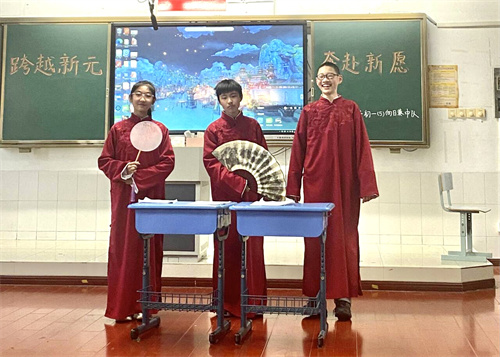 寒气似乎已然散去,初三年级的教室里洋溢着新春的暖意,元旦的脚步声声入耳,催人奋进。眼前,是一抹抹拼搏激昂的中国红,初三学子笑容满面,眼里满是对来年的美好希冀,他们一起畅想,互相打气,为同窗、为战友送上寄语。初三的班级更有福星撞运的讨彩头环节,仪式感十足。星光不会负赶路人,祝福他们用拼搏成全更好的自己,愿2024年的初夏繁花似锦。欢声笑语中,愿青春无悔,为中考加油!