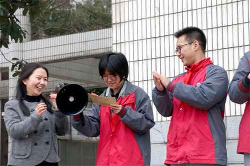 拓展活动不仅有体力的比拼,更有勇气的试炼——一封挑战信。各班挑战者登上主席台,在全体同学们面前完成挑战信里未知任务。或是大声说出自己的理想,或是大声唱出自己最喜欢的歌,或是大声感谢一位最想感谢的人……挑战的是个人的勇气,抒发的真诚的心声。