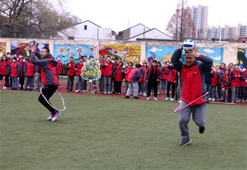 在“挑战龙卷风”中,由个体到集体,双手握杆,齐心协力,一起奔跑,让大家更加体验团队精神,感受团队合作的快乐。汗水尽情地在操场里挥洒,开心洋溢在每一张朝气蓬勃的脸上。活动结束后,初中部张伟星主任为该项目的优胜班级颁发了集体荣誉——“勇往直前风尚奖”。