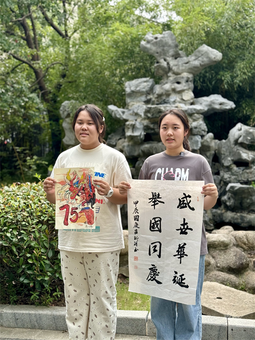 同学们纷纷拿起画笔和毛笔,描绘出他们心中的祖国美景和民族风情,他们的作品展示了对祖国的深厚感情。同学们还通过朗诵活动,用声音传递对祖国的热爱和祝福。