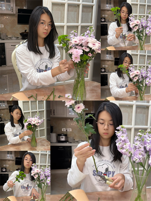 秋风起,花香浓。在这个周末,湖滨中学的学生们纷纷在家中举办了一场场别开生面的插花雅集。他们精心挑选各色花卉,或清新淡雅,或热烈奔放,将自然之美融入作品之中。每一束插花,都如同一首无言的诗,诉说着学生们对自然的热爱与敬畏,让家中充满了诗意与浪漫。在插花的过程中,学生们不仅学会了如何欣赏美、创造美,更在花香中找到了心灵的宁静与喜悦。