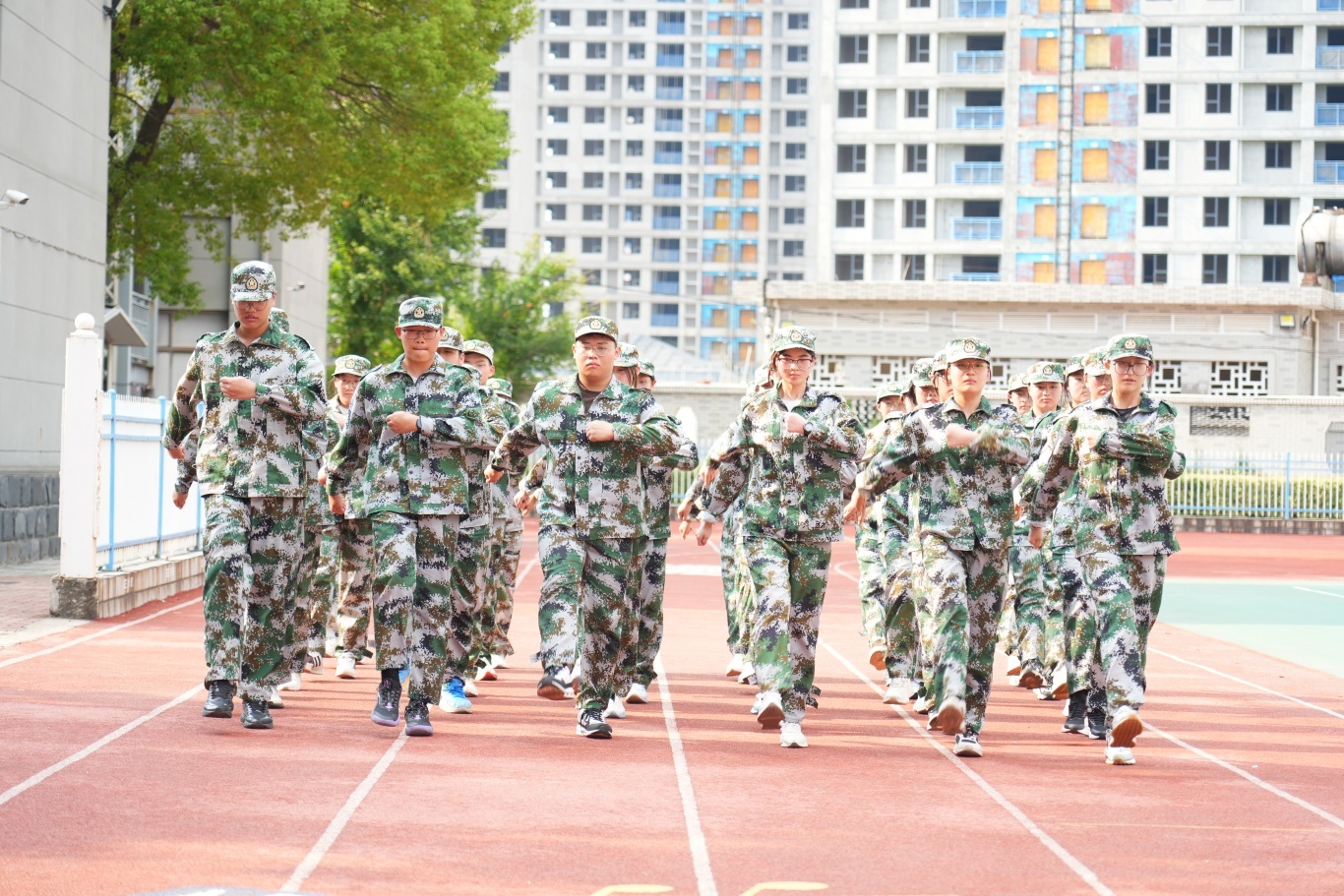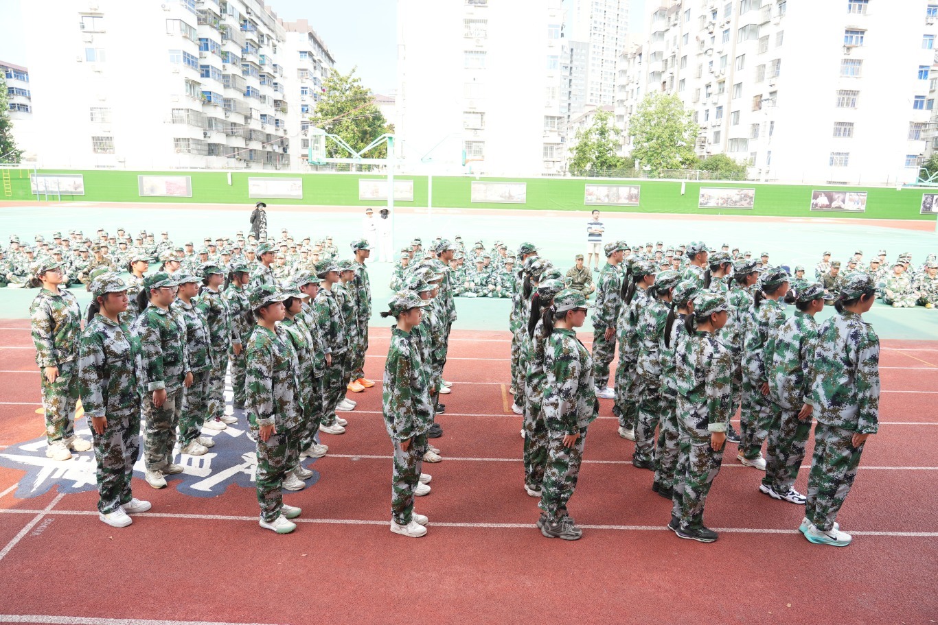 全体高一新生身着整齐迷彩服