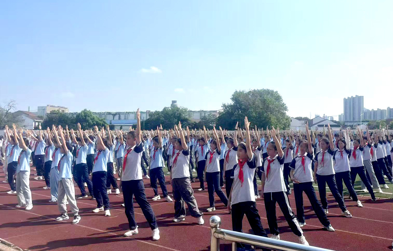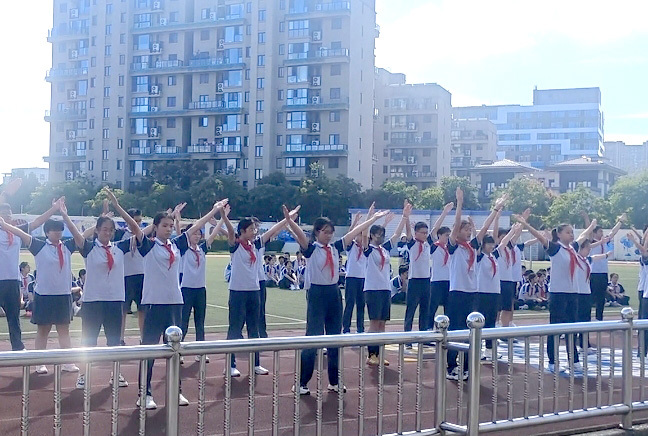 为深入贯彻落实无锡市义务教育学校“2·15”专项行动,切实保障学生每天校内综合体育活动时间不低于2小时,9月22-24日,初中部初一、初二、初三学子以班级为单位,在学校操场举行了广播操比赛。此次比赛是对广播操学习成果的一次检阅,更是展现了湖滨学子昂扬风貌。