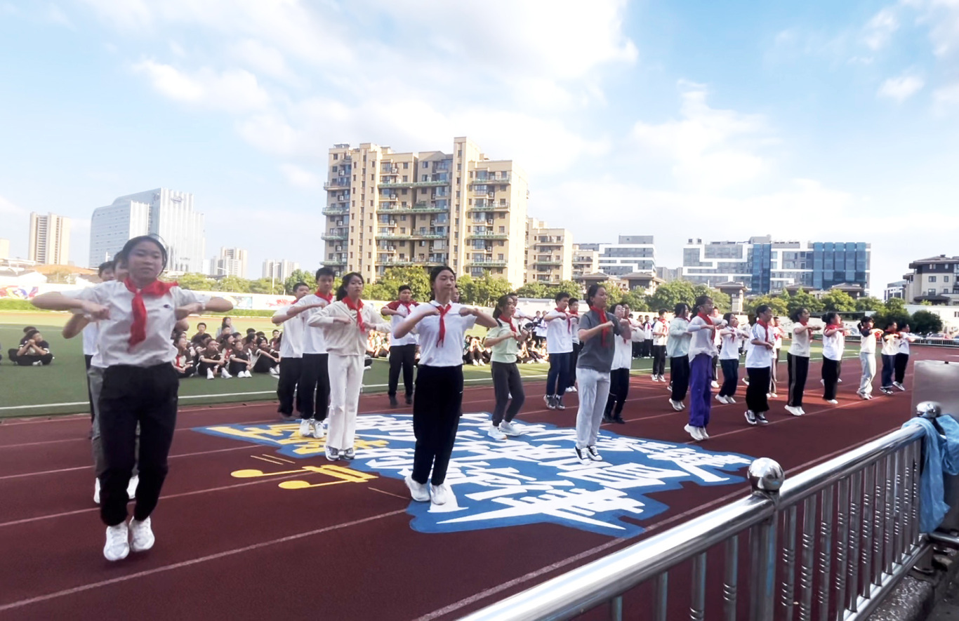 比赛当日,各班方阵步伐铿锵、口号嘹亮,依次入场。随着广播操音乐的响起,同学们动作标准、舒展有力,伸臂、转身、跳跃,每一个细节都力求完美。