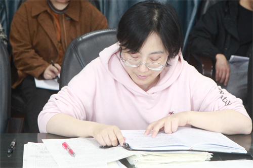 殷芙蓉老师和李赟老师作为高三班主任代表发言,她们各自分析了班级一模考试的成绩情况,分享班级在备考过程中的亮点和不足,特别强调了班级管理和学生心理辅导的重要性。