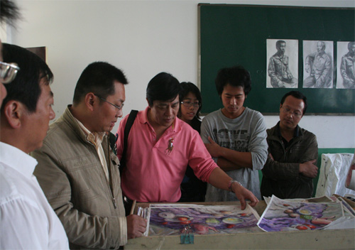 10月26日beat365中国唯一官网部分美术教师在王晓刚校长和薛仲延书记的带领下,前往姜堰市美术学校参观、学习,与该校美术专业教师共同探讨教学经验,并现场观摩该校高三学生作画,相互交流两校学生习作,为增进两校美术专业教学共同发展和提高教学水平,架起了友谊的桥梁。